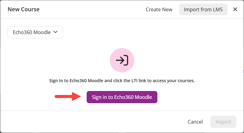 To import a course from an LMS / VLE, it must first be linked to EchoPoll. If you need to configure EchoPoll to your LMS / VLE, an EchoPoll account administrator must contact Echo360 Support at support@echo360.com.