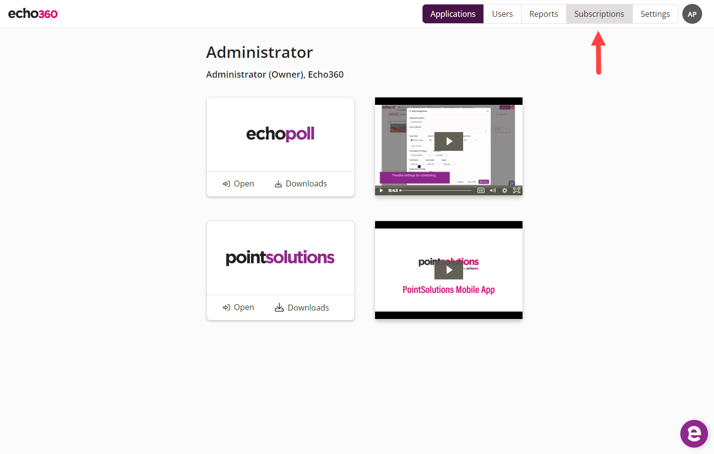 As a PointSolutions administrator, you can review and manage your organization's PointSolutions subscriptions.