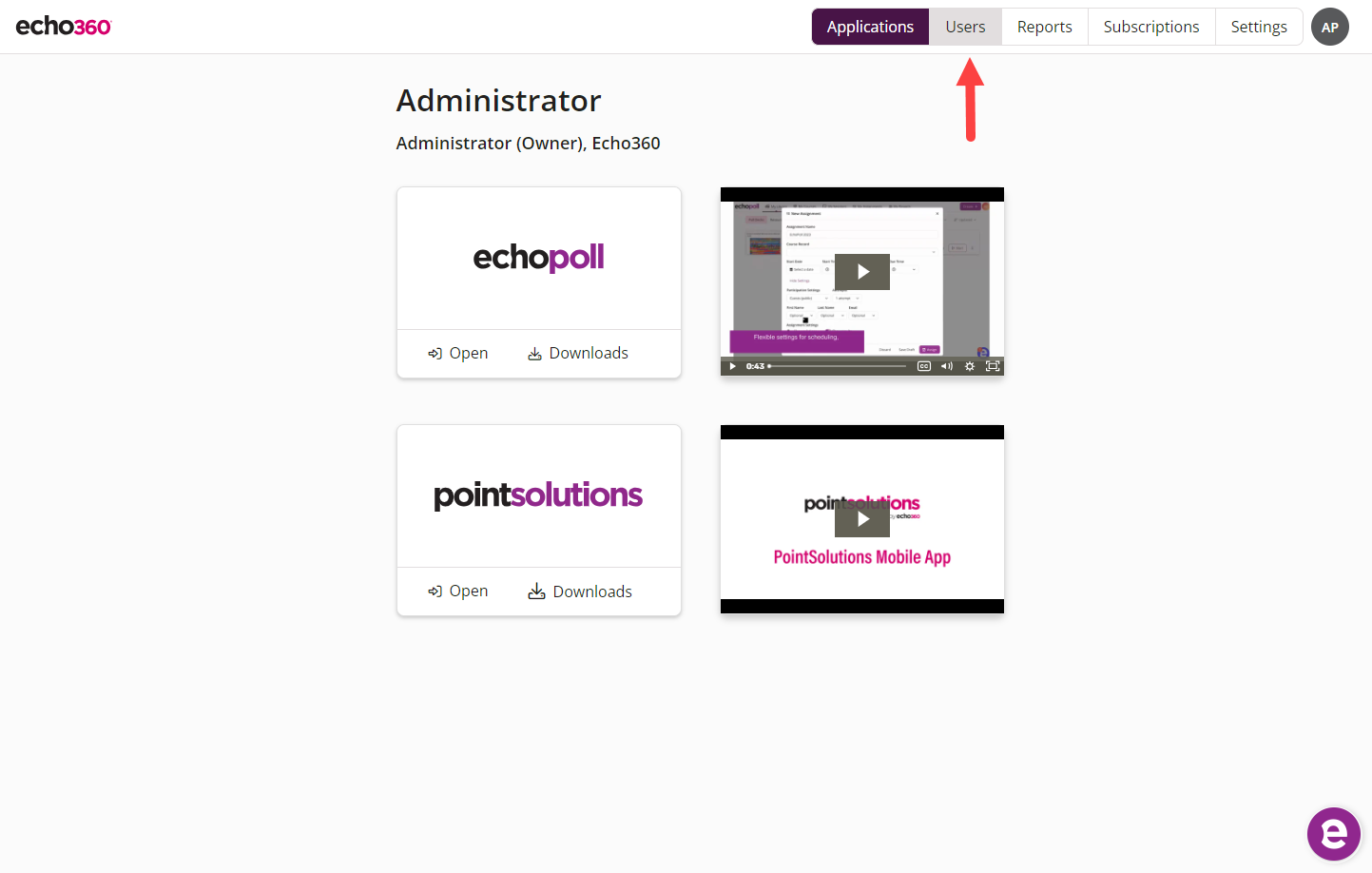 - From your PointSolutions administrator page, select Users from the top right of the screen, as shown in the figure below.