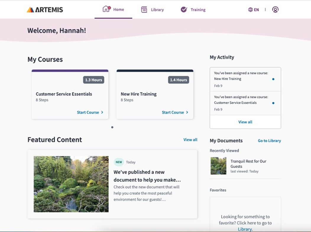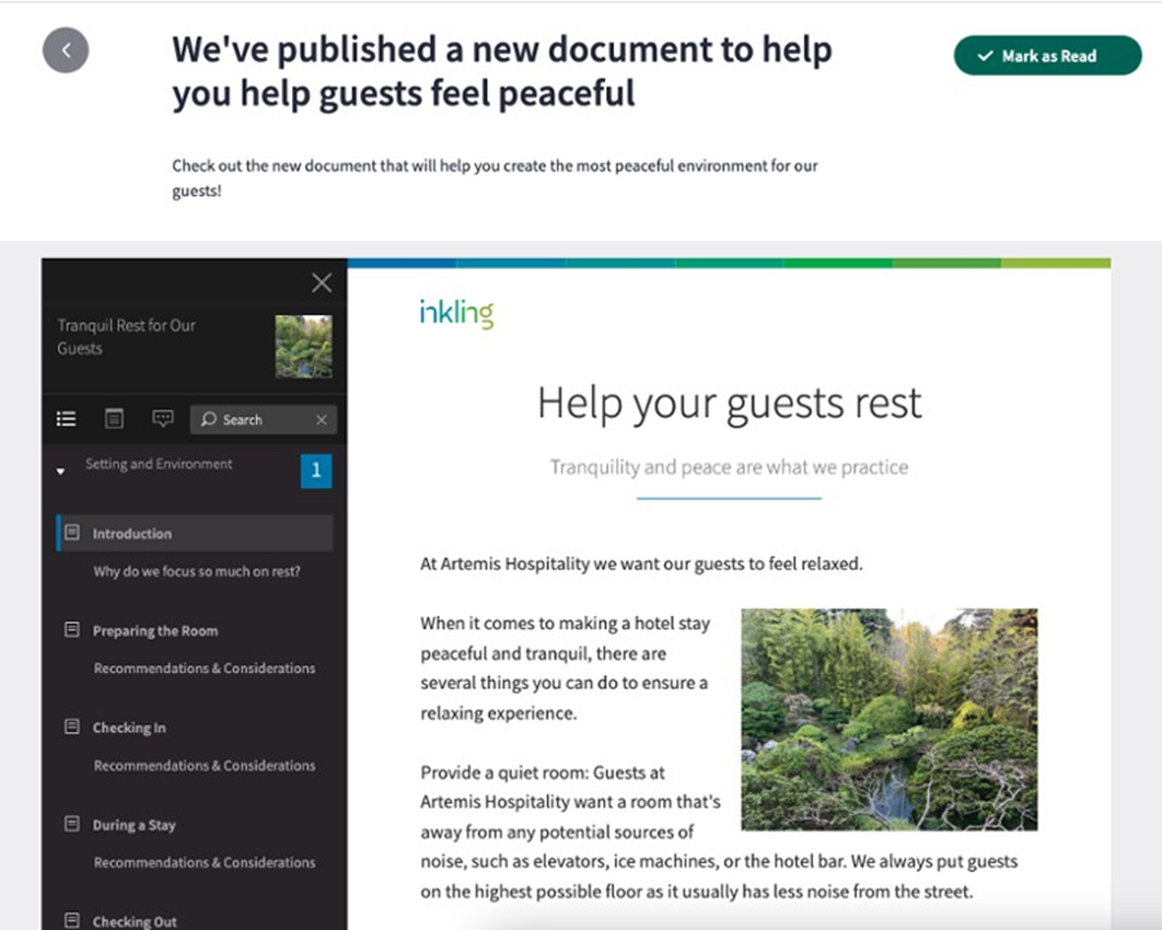 Featured content can be linked to a specific Inkdoc or contain text and URLs. In the example above, the New Hire Training: Week 1 notice is linked to the New Hire Training Inkdoc. The notice indicates that the training content for week 1 is now available, and clicking or tapping the Inkdoc title / icon will take the user directly to the Inkdoc to view the content.