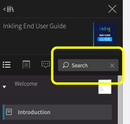 Open the Inkdoc and find the search bar at the top of the Table of Contents. Enter a keyword in the search bar and browse the results.