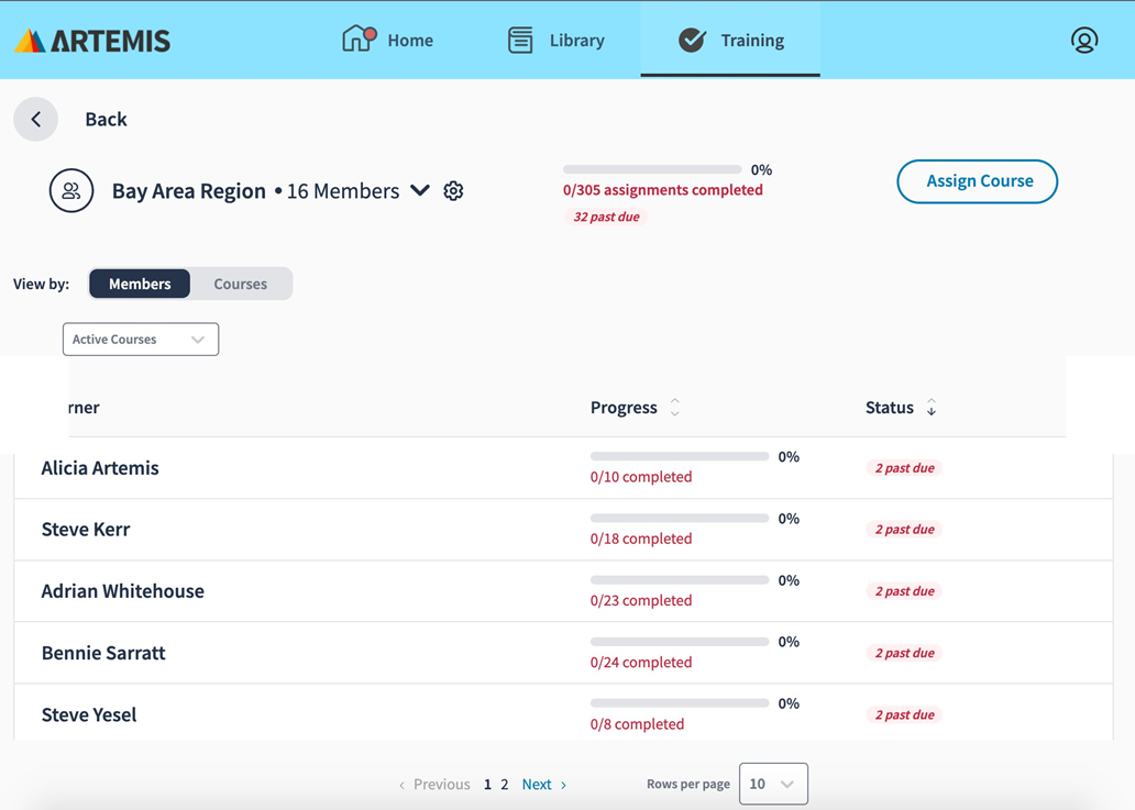 If you are a manager, you can assign courses to your entire team or to a subset. You must select the team to which you would like to assign a course prior to clicking the Assign Course button.