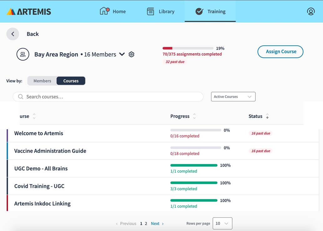 - Select a Course in order to review the learners to whom you have assigned this course.