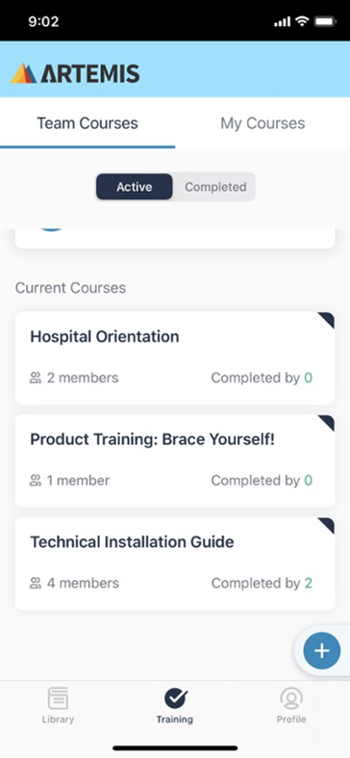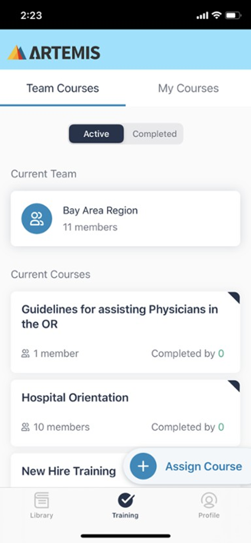 Start assigning courses by tapping on the Assign Course button. You'll notice that as you scroll down the page, the Assign Course button changes to a + icon to ensure it does not block visibility into the active courses.