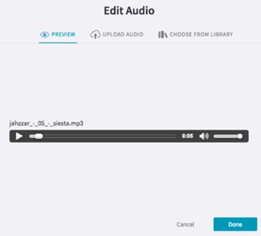 The Edit Audio dialog displays and lets you preview the file.