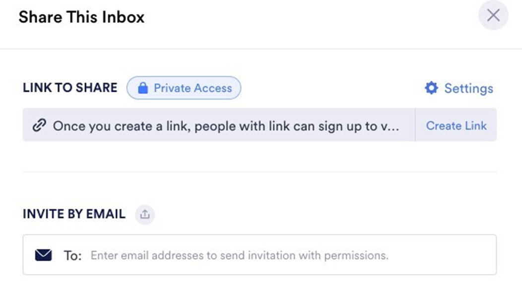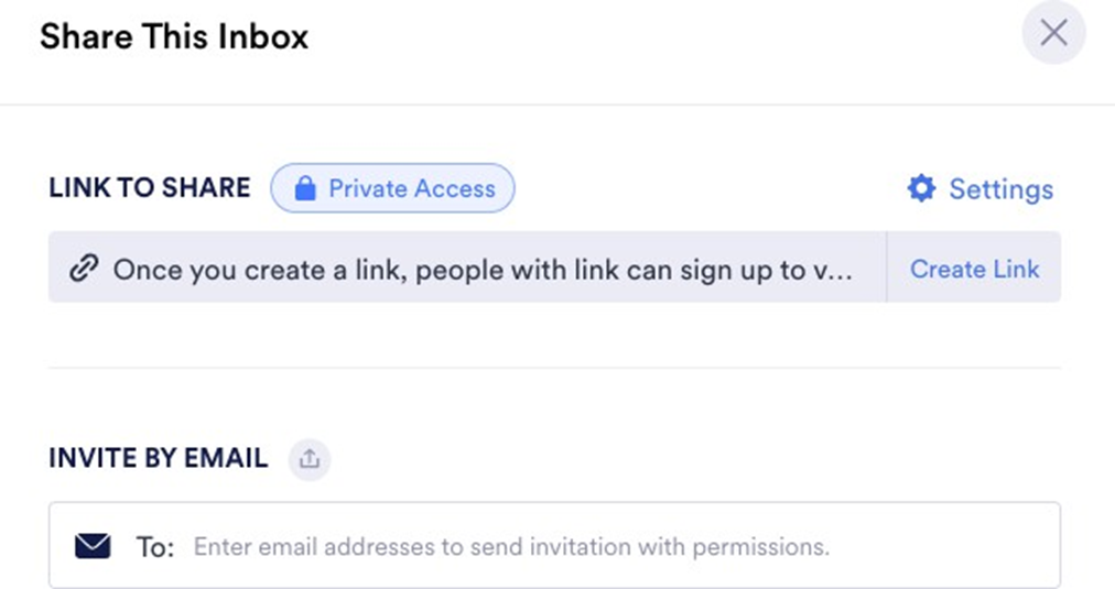 Click Create Link to generate a shareable link for your Inbox, then share it directly with your collaborator.