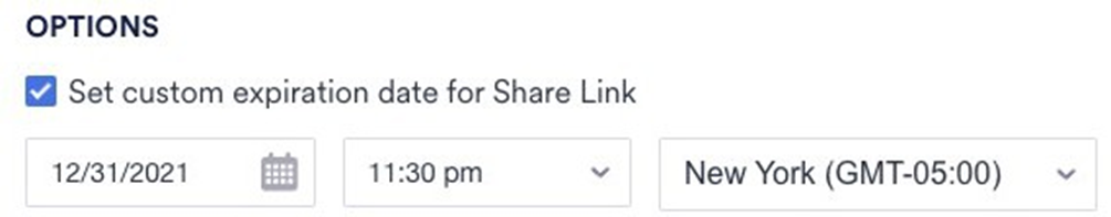 - Options – you can set the expiration date.