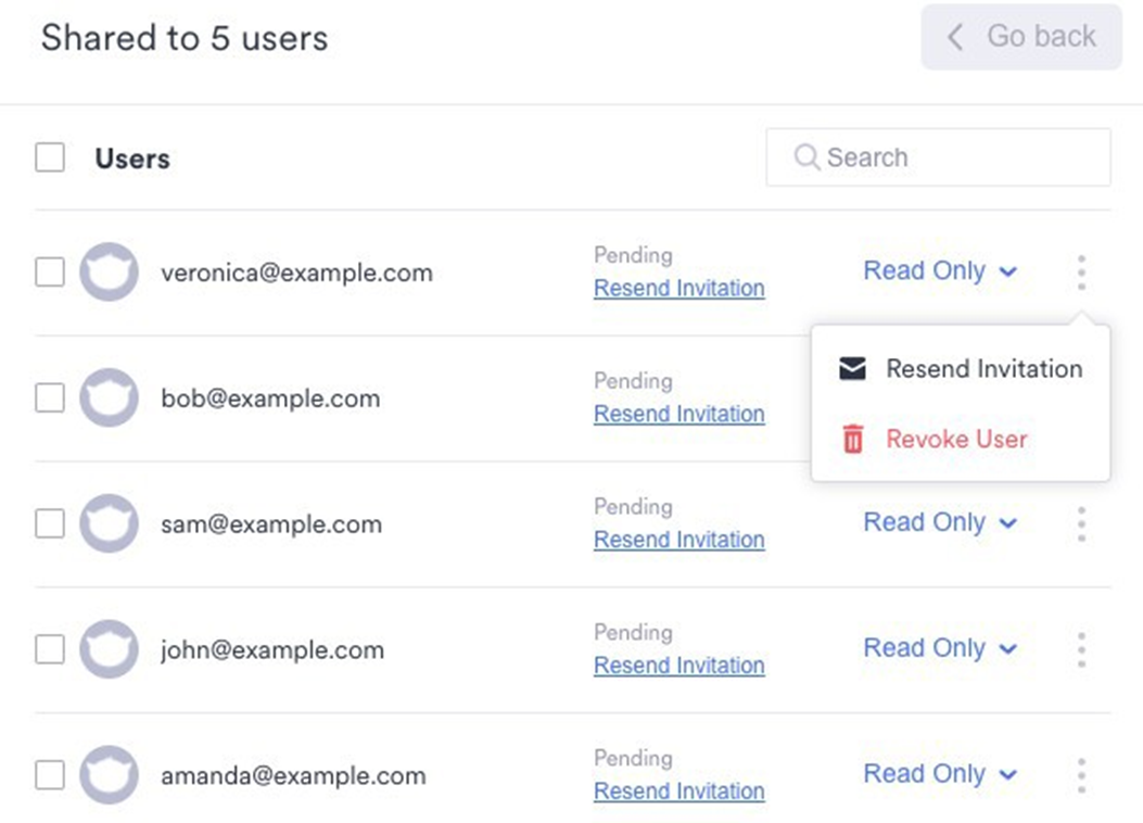 To revoke access, click the icon with the three vertical dots, and then click Revoke User: