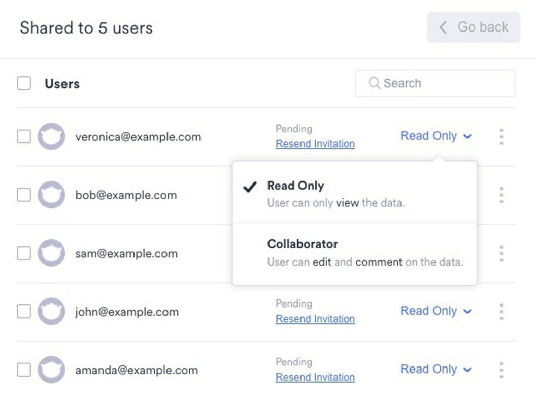When a user's permission is set to Read Only, that user can only view and download data.