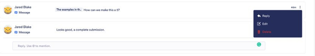 - Choosing Reply will open a comment box where you can type your reply and click the Reply button.