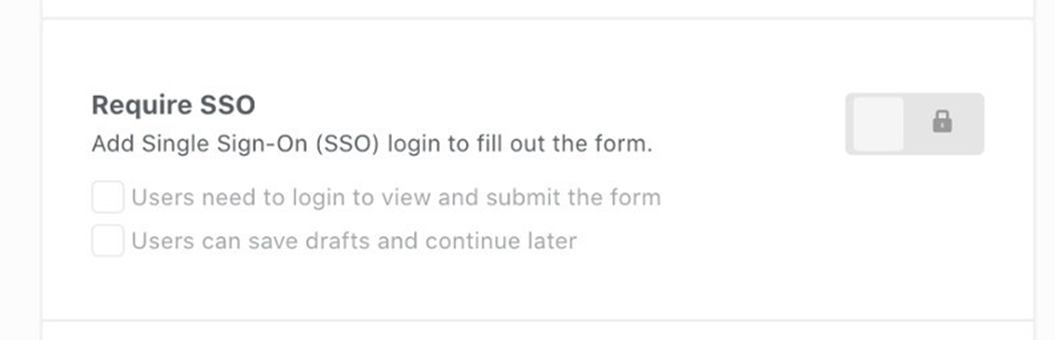 You can enable but not require SSO since forms generally do not require log in to access. However you may prefer to require SSO so form can not be accessed without it. This option will require SSO for all form workflows, including Save and Continue Later, which requires an account.