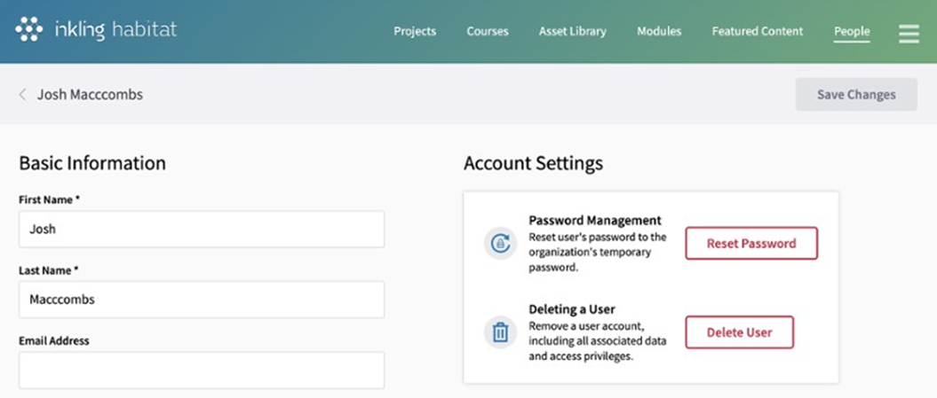 Deleted users are deactivated, and their accounts, data, and access privileges are no longer accessible via Habitat or the EchoInk end-user app.