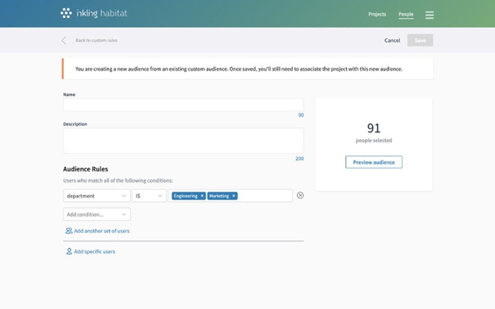 Once saved, you may now associate any applicable projects with this new audience.