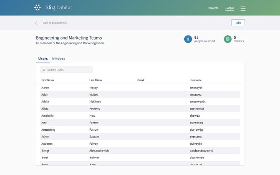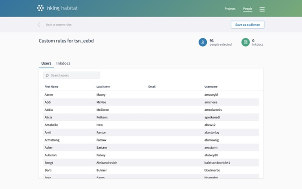Click the Users tab to review all users in the custom rule, or the Inkdocs tab to see all the Inkdocs that are currently included in the custom rule's distribution.