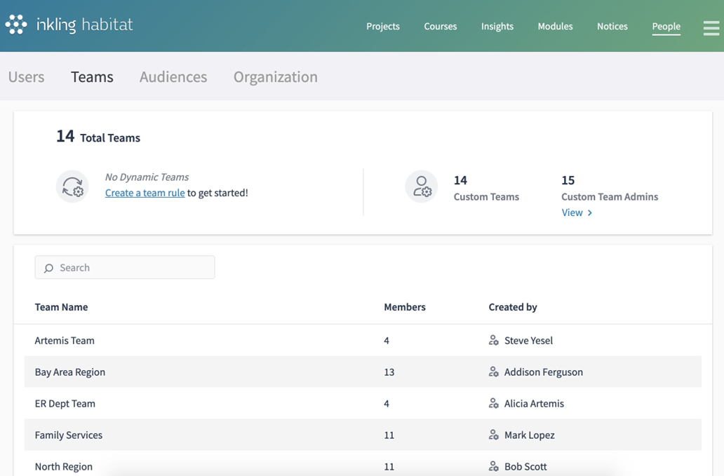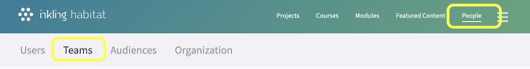 Navigate to the Teams page under the People tab in Habitat to begin creating or managing teams using the Custom Teams settings.
