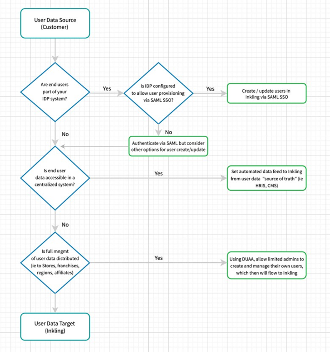 - Does your IDP have enough user data in it to define learning audiences as required by the business? If not, SAML for user provisioning is still an option but could be supplemented by a data feed to get richer data attributes about end users.